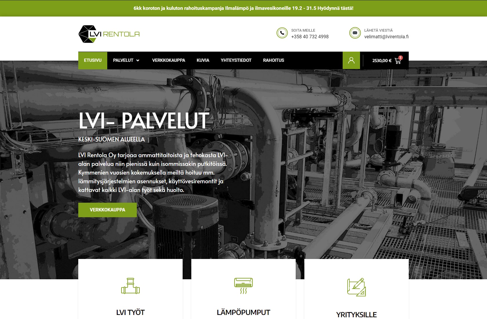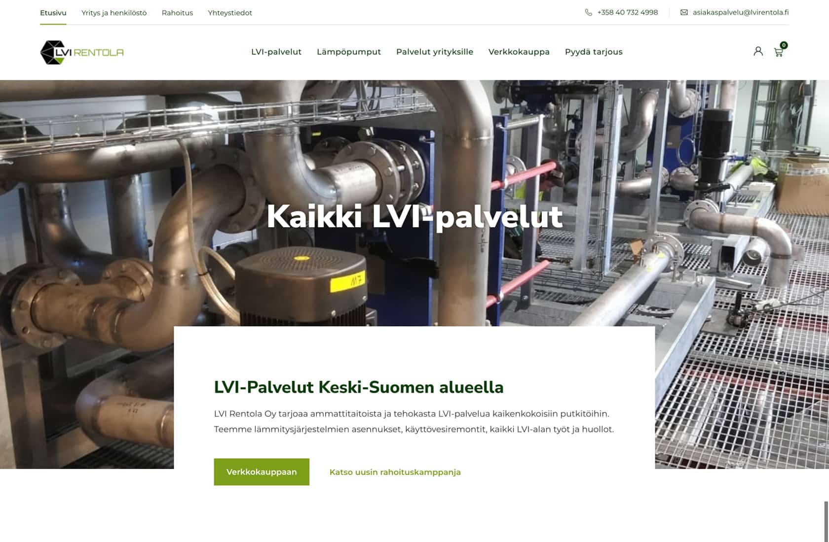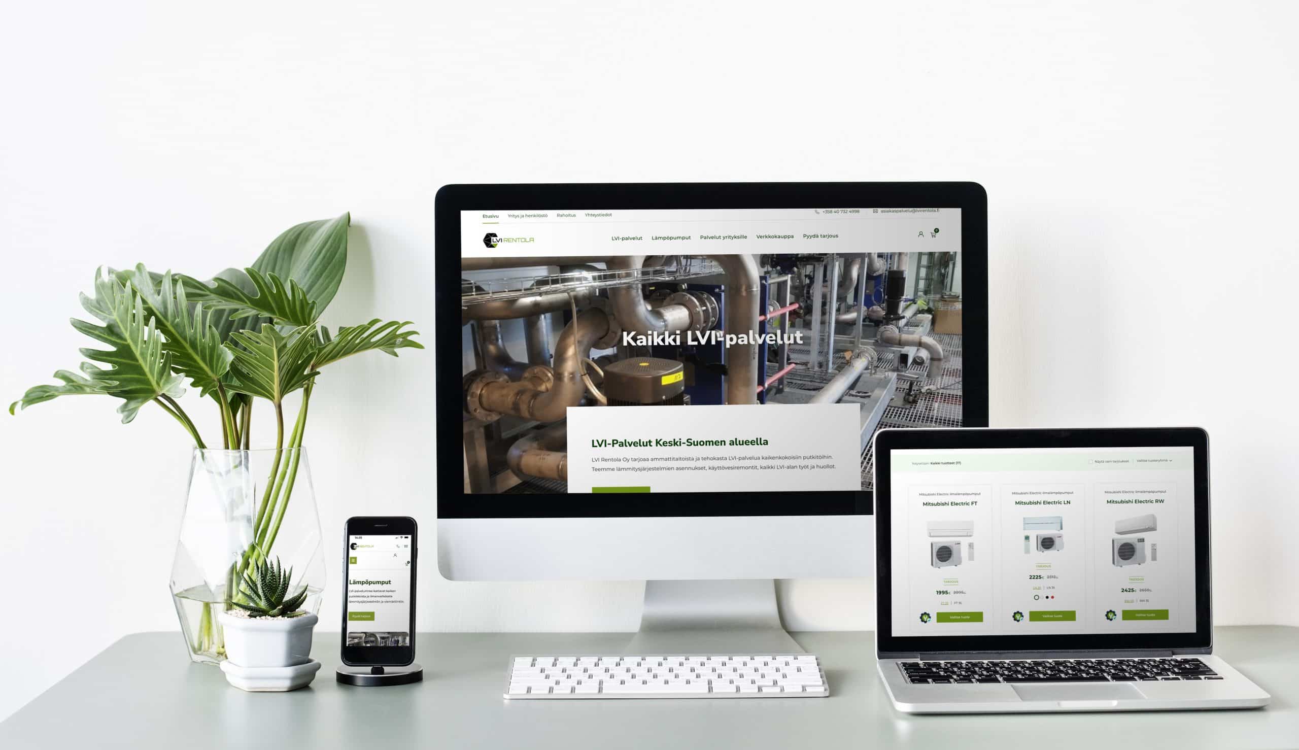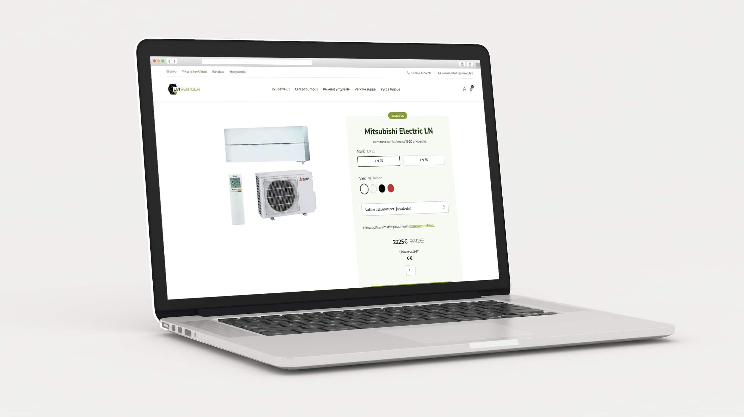 LVI Rentola Oy tarvitsi uuden, modernin verkkosivuston, joka tarjoaa asiakkaille mahdollisuuden tutustua laajaan valikoimaan LVI-palveluita sekä tehdä hankintoja suoraan verkkokaupasta. Projektiin kuului räätälöidyn verkkokaupan toteutus lämpöpumpuille, jossa asiakkaille tarjotaan energiatehokkaita ratkaisuja. Verkkokaupan ostopolku suunniteltiin selkeäksi ja käyttäjäystävälliseksi, jotta energiatehokkaiden tuotteiden hankkiminen on mahdollisimman sujuvaa.
